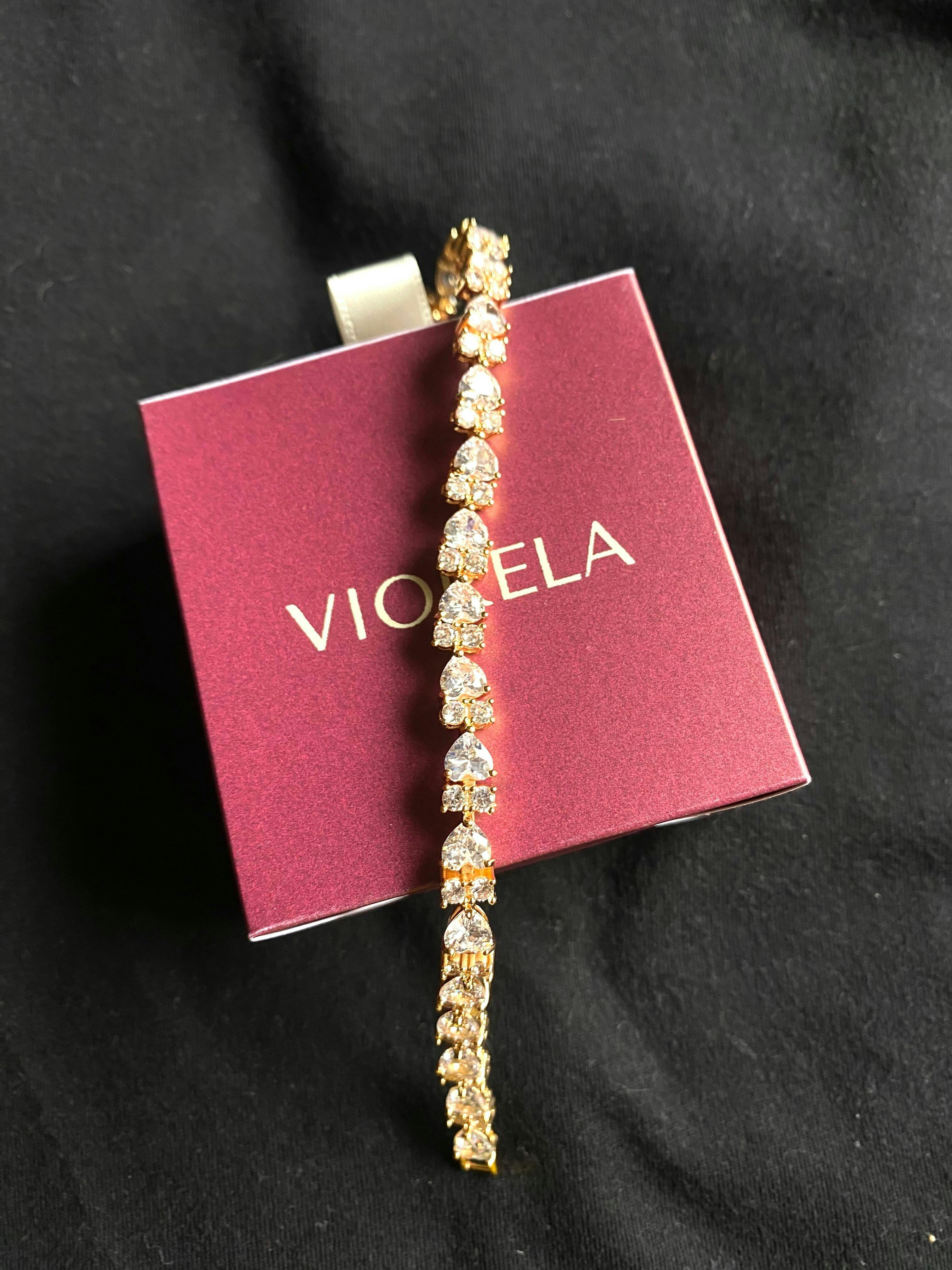 Pulseira Cravejada Caroline, produzida com zircônias de coração e pontos de luz é uma semijoia de alto padrão, banhada a ouro, que proporciona sofisticação, qualidade e brilho intenso.