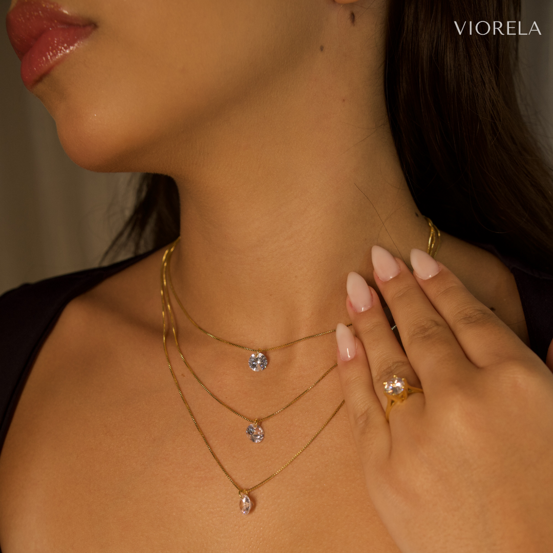 Colar Dourado Triplo com Zircônias Brilhantes